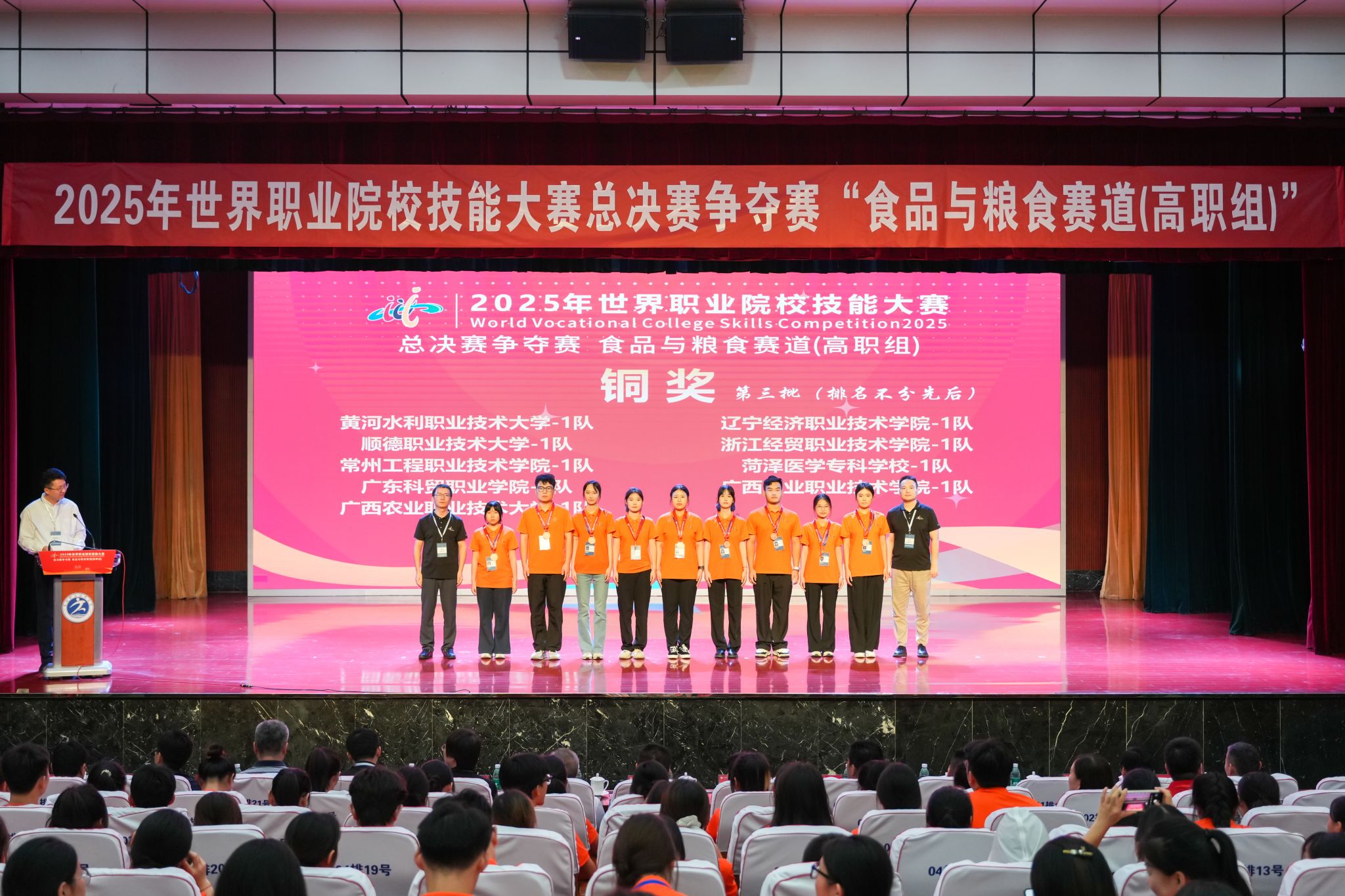 8月26日,2025年世界职业院校技能大赛总决赛争夺赛食品与粮食赛道(高职组)在kok电竞体育真人圆满落幕。经历为期4天的激烈角逐,最终产生金奖10项、银奖19项、铜奖29项。